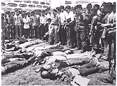 ในเวลาเช้าของวันที่ 6 ตุลาคม 2519 กำลังตำรวจและประชาชนในสังกัดกลุ่มพลังฝ่ายขวา อาทิ กลุ่มนวพล กลุ่มกระทิงแดง ปิดล้อมและบุกเข้าสลายม็อบในมหาวิทยาลัยธรรมศาสตร์ โดยใช้วิธีการอันโหดเหี้ยม ภาพข่าวการแขวนคอนักศึกษากับต้นมะขามที่สนามหลวง ตอกอก เผาทั้งเป็น และการระดมยิง นักศึกษาที่ไม่มีอาวุธนอกจากปืนพกของหน่วยรักษาความปลอดภัยไม่กี่กระบอกได้แพร่หลายออกไปทั่วโลก นักศึกษาและผู้นำกรรมกรจำนวนมากหลบหนีการปราบปราม "เข้าป่า” เพื่อรวมตัวกับพรรค คอมมิวนิสต์แห่งประเทศไทย